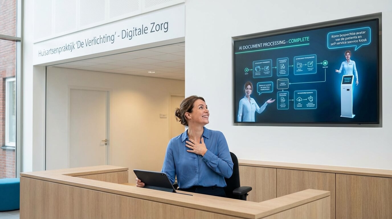 - Intake Automatisering: Laat patiënten voorafgaand aan het bezoek een digitale intake doen via een AI-chat. De anamnese is al voor 80% compleet voordat de patiënt de spreekkamer binnenstapt.